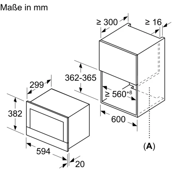 | Nischenmaß | Breite | min. 560 mm, max. 568 mm | |