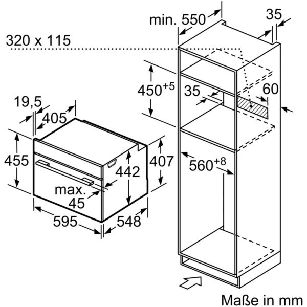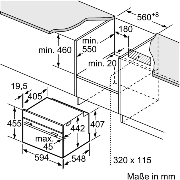 | Nischenmaß | Breite | min. 560 mm, max. 568 mm | |