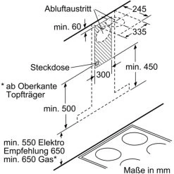 | Montage | Für Wandmontage über Kochstellen; Schnellmontagebefestigung | ||