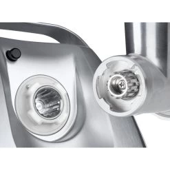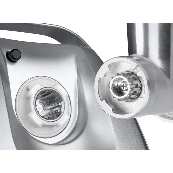 | Aufsätze/Lochscheiben | Fruchtpressenvorsatz, Reibevorsatz, Reibscheibe fein, Reibscheibe grob, Wurststopfervorsatz, Schneideinsatz dünn, Kebbevorsatz | ||