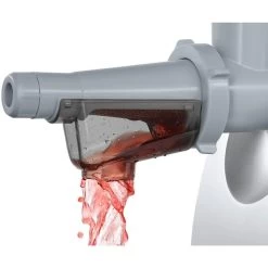 | Zubehör | vorhanden | Einfüllhilfe, Einfüllschale, Fruchtpressenvorsatz, Reibevorsatz, Reibscheibe fein, Reibscheibe grob, Stopfer, Wurststopfervorsatz, Schneideinsatz dünn, Kebbevorsatz | |