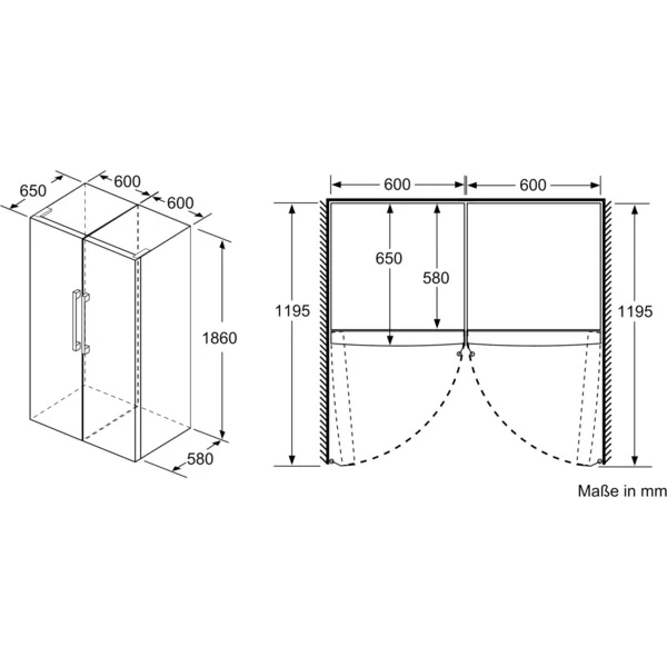 | Abmessungen | Breite: 600 mm x Höhe: 1.860 mm x Tiefe/Länge: 650 mm | ||