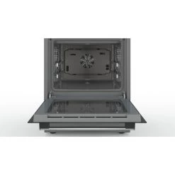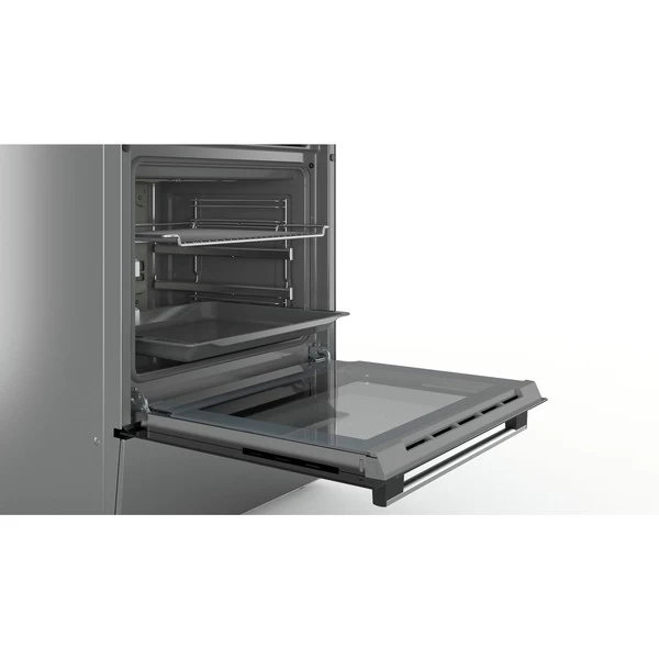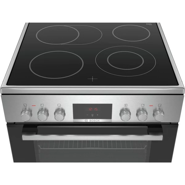 Der Standherd Bosch HKR39C250 ist mit einem Nutzinhalt von 66 Litern optimal für jede Küche geeignet und lässt sich als Standgerät nahezu überall plazieren. Sieben Heizarten machen das Backen und Garen für angehende Köche zur Leichtigkeit. Die 3D-Heißluft sorgt für perfekte Ergebnisse dank optimaler Wärmeverteilung auf bis zu 3 Ebenen gleichzeitig und mit der Schnellaufheizung gelangt man schneller zur gewünschten Backtemperatur. EcoClean Direct ermöglicht eine mühelose Reinigung dank spezieller Beschichtung der Rückwand, die Fette automatisch absorbiert. Die Versenkknebel ermöglichen eine leichte Reinigung der Bedienoberfläche. Die Bedienung mit rotem LCD-Display ist dank direktem Zugriff auf Zeitfunktionen besonders einfach. Das Glaskeramik Kochfeld mit vier HighSpeed-Kochzonen bietet dank Zweikreis-Kochzone und zuschaltbarer Bräterzone auch für großes Kochgeschirr genügend Platz.