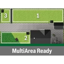 | Feature | MultiArea speichert die Daten von bis zu drei Rasenflächen, BorderCut sorgt für einen sauberen Abschluss bis zur Kante, SpotMow ermöglicht präzises Mähen in engen Bereichen wie unter Gartenmöbeln | ||