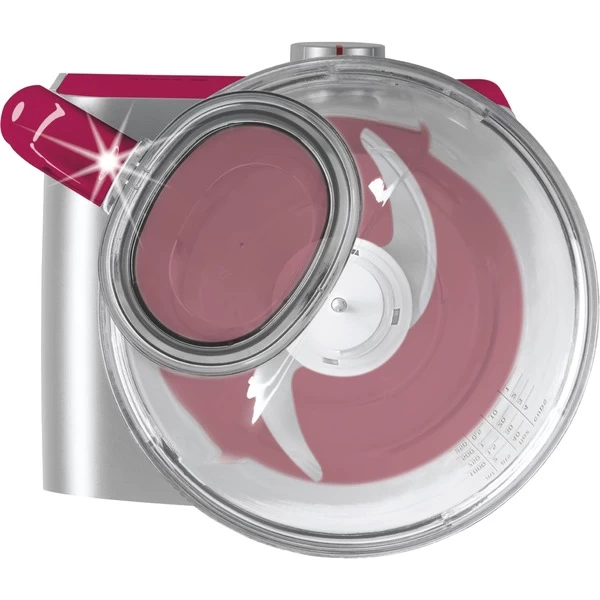 | Zubehör | vorhanden | Rührschüssel, Deckel mit Einfüllhilfe und Stopfer, Multifunktionsmesser, Schlagscheibe, Mixer-Aufsatz, Schneideinsätze (dick und dünn), Raspeleinsätze (grob und fein), Scheibeneinsätze, Trägerscheibe, Teigwerkzeug, Zitruspresse | |