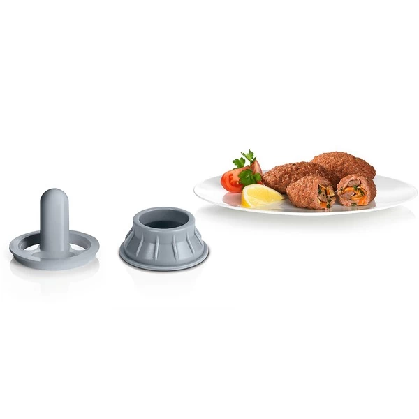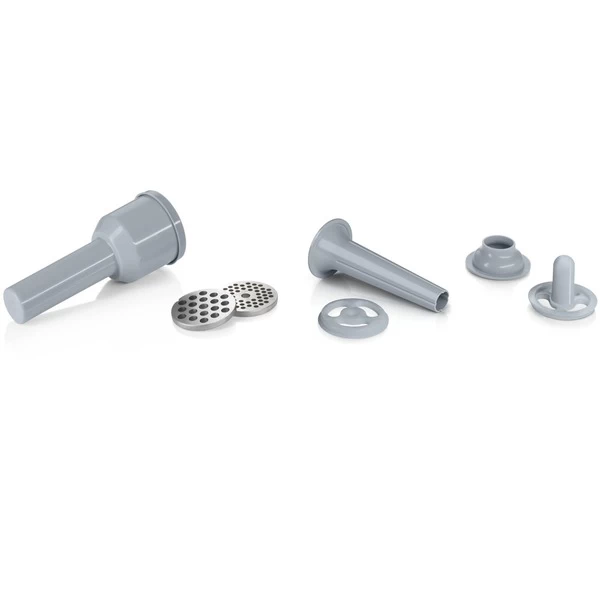 | Material | Gehäuse, Schnecke und Schraubring des Fleischwolf-Vorsatzes sind aus Aluminium | ||