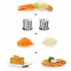 | Aufsätze/Lochscheiben | Reibevorsatz, Reibscheibe grob, Wurststopfervorsatz, Schneideinsatz dünn, Kebbevorsatz | ||