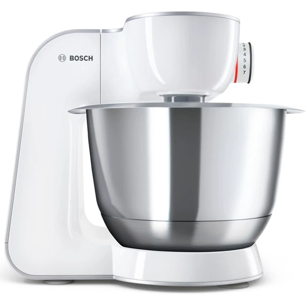 Die Universal-Küchenmaschine Bosch MUM 58243 ist die richtige Küchenmaschine für erste beeindruckende Koch- und Backergebnisse. Durch das hochwertige Patisserieset, welches sich in der mitgelieferten Zubehörtasche verstauen lässt, macht Backen richtig Spaß. Bei der schnellen und komfortablen Verarbeitung großer Mengen und anspruchsvoller Teige läuft der 1000 Watt starke Motor zu seiner Höchstform auf. Er überzeugt dabei durch eine perfekte Performance sowie beste Resultate. Die MUM 58243 besitzt eine Edelstahl-Rührschüssel für maximal 2,7 kg Rührteig oder 1,9 kg Hefeteig. Durch das umfangreiche Zubehör ist die MUM 58243 auch anderen Herausforderungen gewachsen. Mühelos schneidet, raspelt oder mixt sie verschiedene Lebensmittel. In punkto Sicherheit glänzt sie mit einem Überlastungsschutz, einer Wiedereinschaltsicherung und rutschfesten Gummifüßen für einen sicheren Stand auf der Arbeitsfläche.