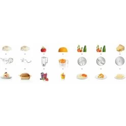 | Verwendung | Aufschlagen, Rühren, Kneten, Mixen, Raspeln, Reiben, Schnitzeln, Zitruspresse | ||