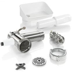 | Zubehör | vorhanden | Lochscheibe (Durchmesser 4,5 mm), Messer, Einfüllschale und Stopfer | |
