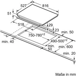 | Nischenmaß | Breite | min. 750 mm, max. 780 mm | |