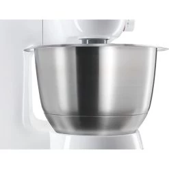 Die Edelstahl-Rührschüssel MUZ5ER2 von Bosch ist passend für die Küchenmaschine MUM5. Sie bietet 3,9 Liter Volumen und eine spezielle Innenform zur optimalen Verarbeitung diverser Teige. Sie fasst bis zu 0,75kg Mehl + Zutaten, max. 2kg Rührteig oder 1,5kg Hefeteig. Die Schüssel MUZ5ER2 ist aus robustem, langlebigem Edelstahl gefertigt, lebensmittelecht und geschmacksneutral. Außerdem ist sie spülmaschinengeeignet und daher besonders einfach zu reinigen.