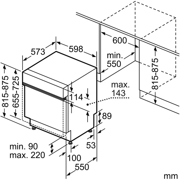 | Nischenmaße | Breite | mind. 600 mm | |