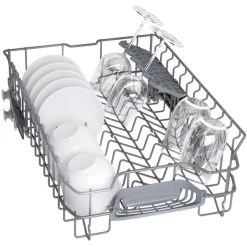 Der freistehende Geschirrspüler Bosch SPS2XMI01E nimmt bis zu 10 Maßgedecke auf. Zur Verfügung stehen fünf verschiedene Spülprogramme sowie drei Zusatzfunktionen. Die Automatikprogramme sorgen automatisch für beste Spülergebnisse und mit dem Favoritenprogramm können individualisierte Einstellungen mit nur einem Knopfdruck gestartet werden. Das Vario Korbsystem und die VarioSchublade lassen sich flexibel und komfortabel Beladen. Die Glasschutz-Technik sorgt für die schonende Behandlung von Gläsern und empfindlichem Geschirr und die zuwählbare Extra Trocknen-Funktion ermöglicht extra gründliches Trocknen bei schwer zu trocknender Beladung. Das AquaStop-System schützt vor Wasserschäden. Dank der Home Connect-App ist der Geschirrspüler SPS2XMI01E über Handy oder Tablet steuerbar.