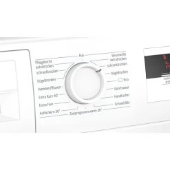| Bedienung | TouchControl-Tasten: Knitterschutz, Trocknungsgradfeinjustage, 24 h Fertig in, Vollelektronische Einknopf-Bedienung für Feuchtegesteuerte-, Zeit- und Spezialprogramme | ||