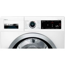 | Bedienung | TouchControl-Tasten: Fertig in, Knitterschutz 60 Min., Knitterschutz 120 Min., Kindersicherung 3 Sek., An/Aus, Schontrocknen, Signal, Start / Nachlegen / Pause, Trocknungsgradfeinjustage, Trockenziele, 24 h Fertig in, Programmwähler mit integriertem Ein-/ Ausschalter | ||