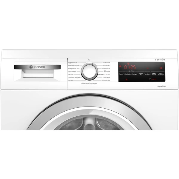 | Weitere Programme | Trommel reinigen (mit Erinnerungsfunktion), Hemden/Blusen, Pflegeleicht Plus, Schleudern/Abpumpen, Schnell/Mix, Sportswear, Spülen, Decken, ExtraKurz 15’/30′, Hygiene Plus | ||